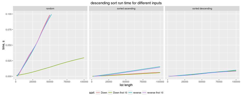 The original version of this article said that sort runs in Θ(nlogn) time. @obadzz points out that this is not true: sort is implemented in such a way that it will run linearly when the list is already almost sorted in any direction. Thus I have replaced Θ(nlogn) with O(nlogn) when talking about sort’s complexity.