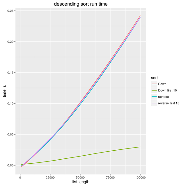 This argument can be dismissed on the grounds that reverse’s run time, Θ(n), is, in general, less than sort’s run time, O(nlogn), so it’s not a big deal. Additionally, one could argue that, unlike more complex solutions, this one is “obviously correct”.